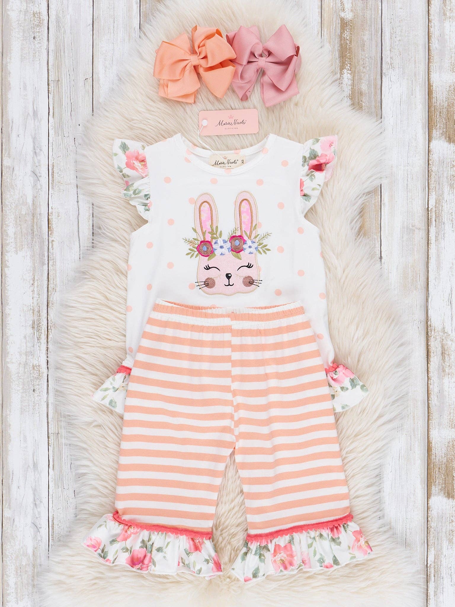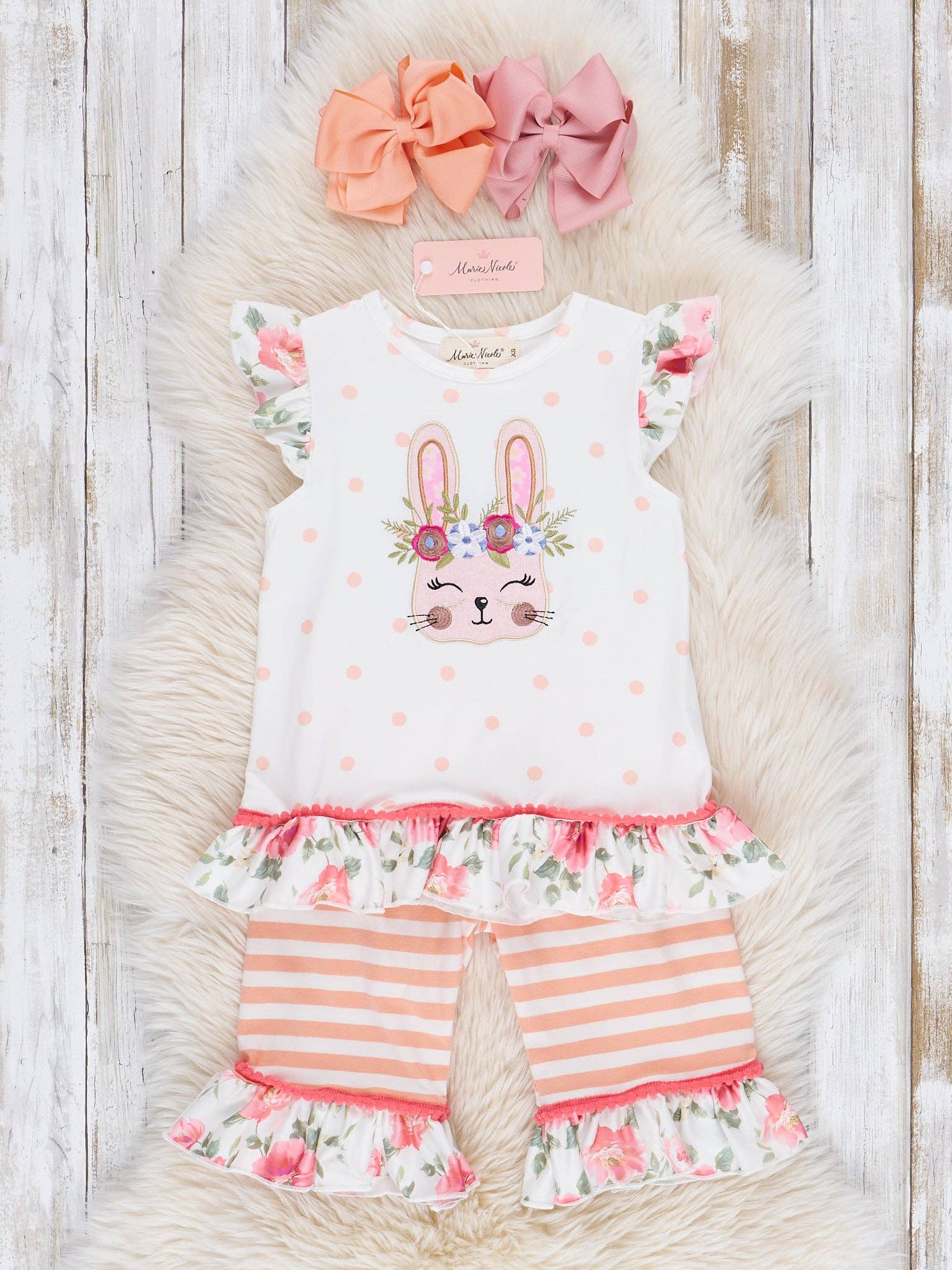 This Punch Floral Bunny Ruffle Outfit is perfect for your girlies this Easter!